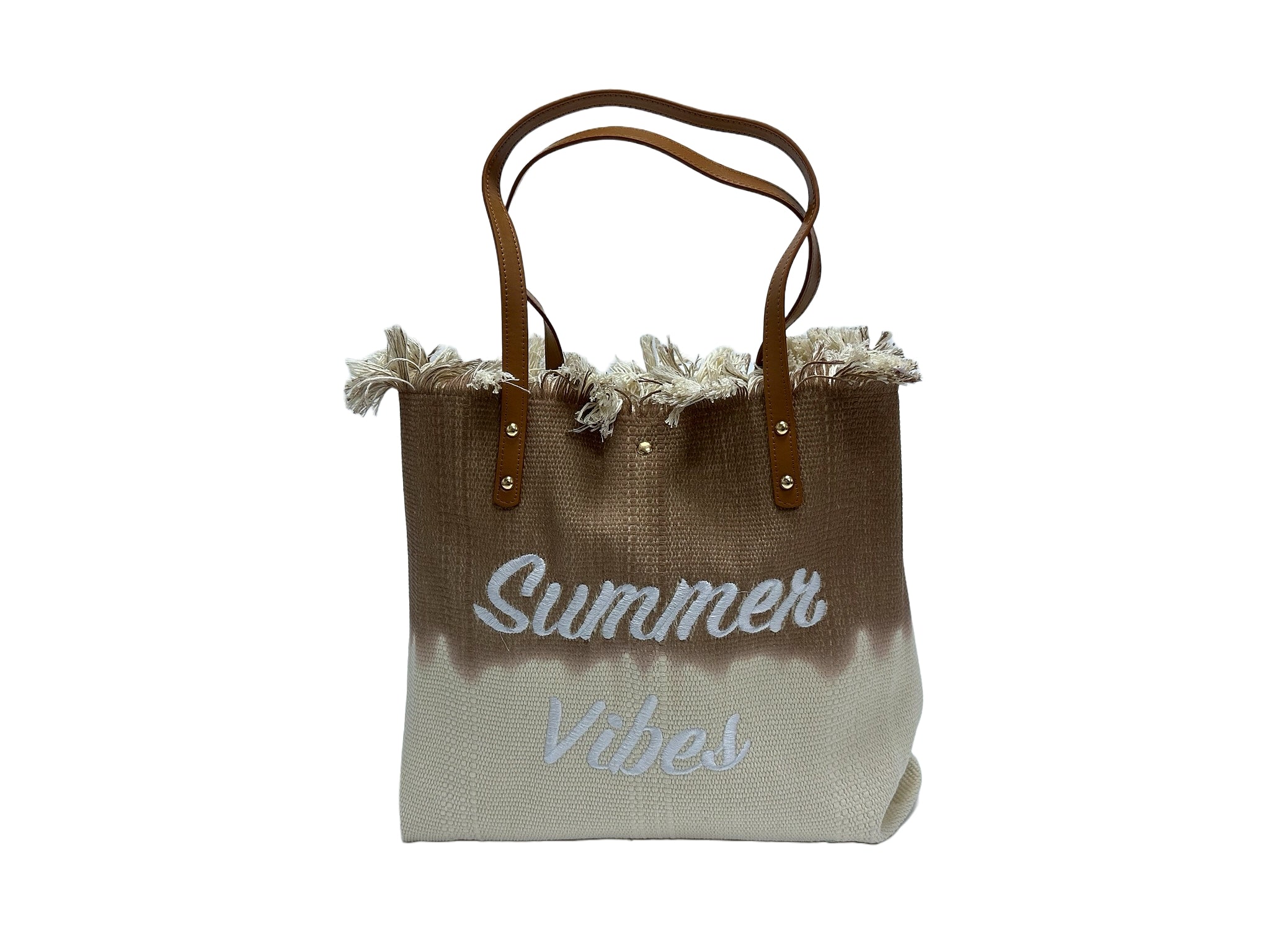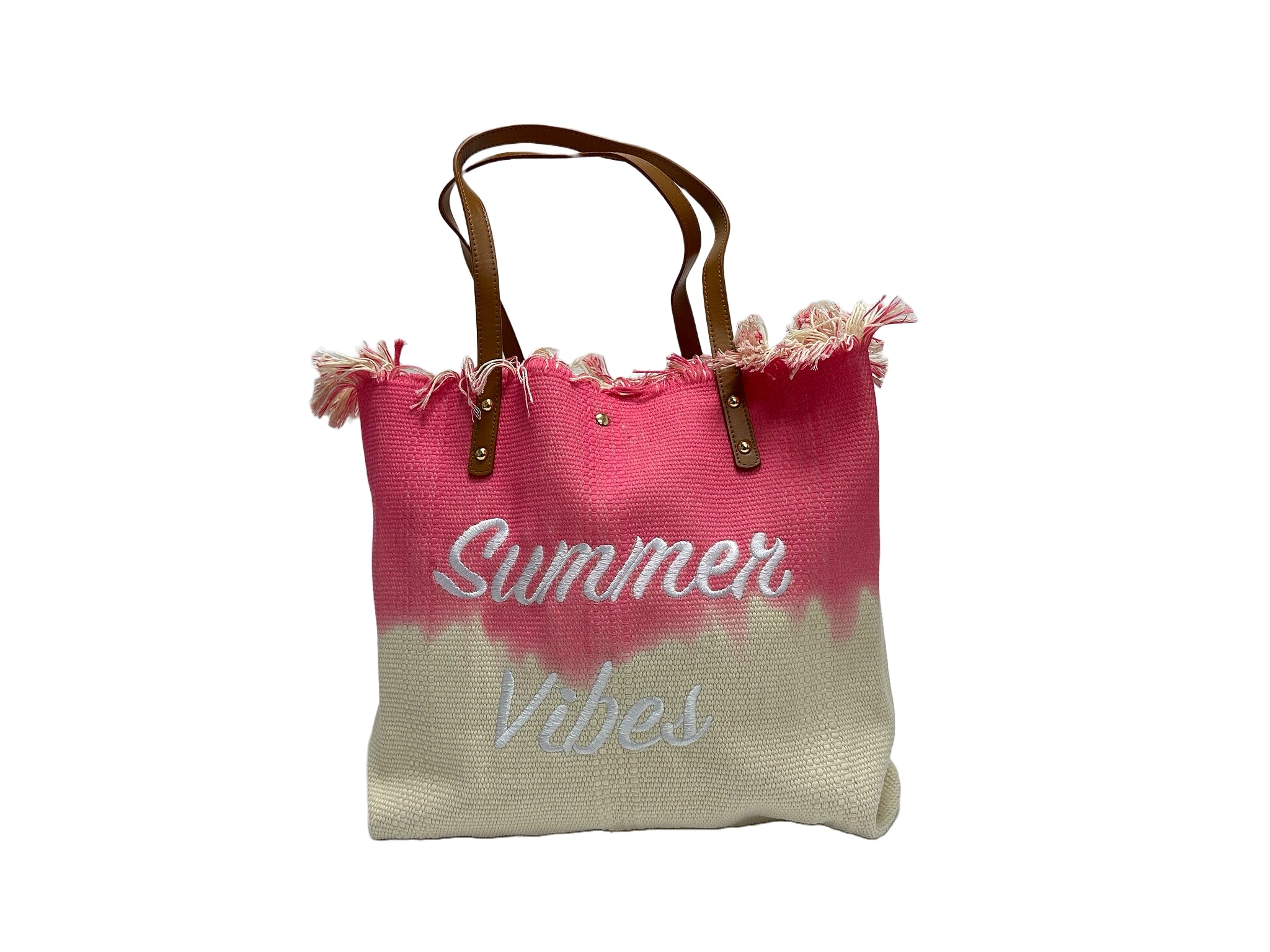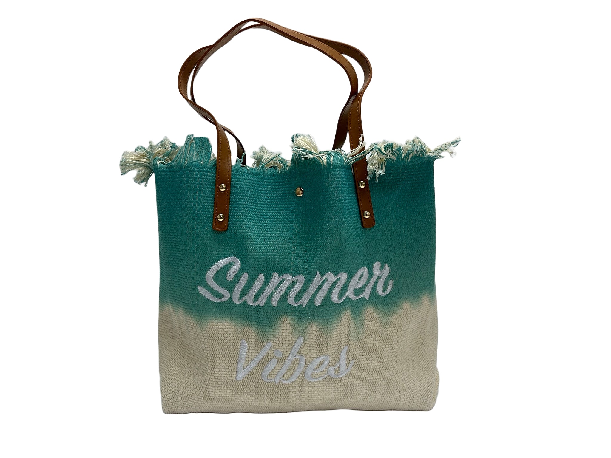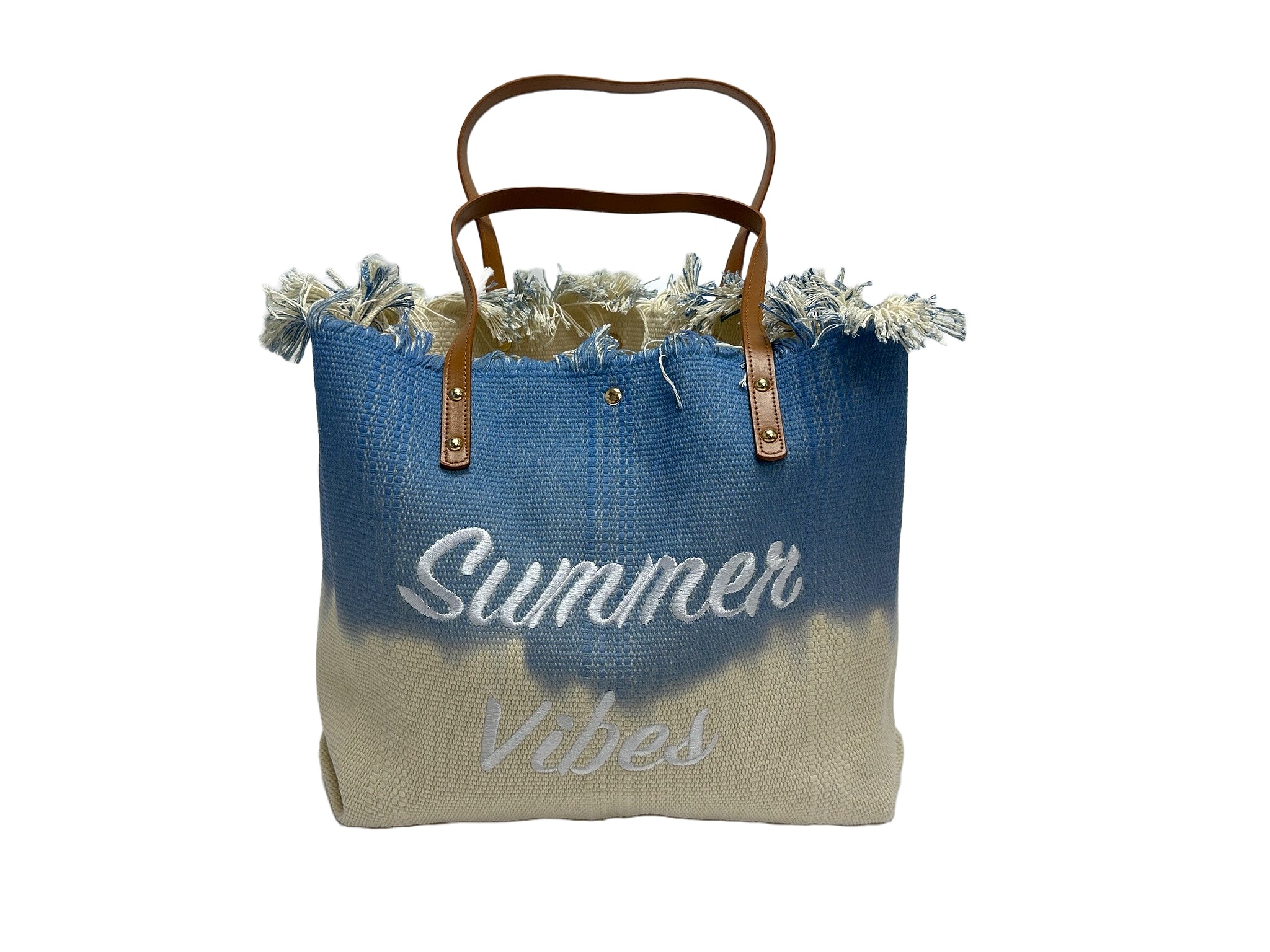 Capture the essence of summer with the "Summer Vibes" canvas tote bag. Featuring an ombre design, durable leather straps, and fringe accents, this tote is both stylish and functional. Perfect for beach outings, shopping, or casual day trips.