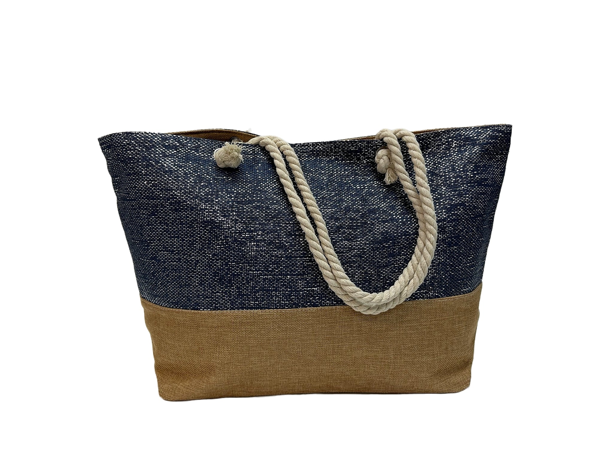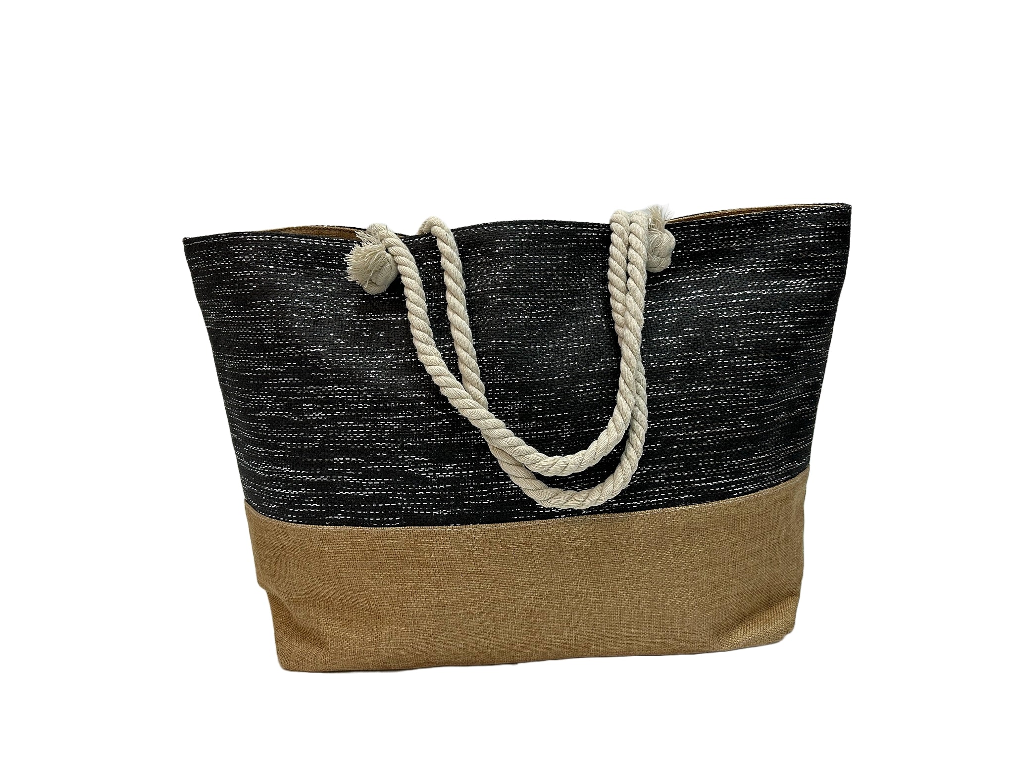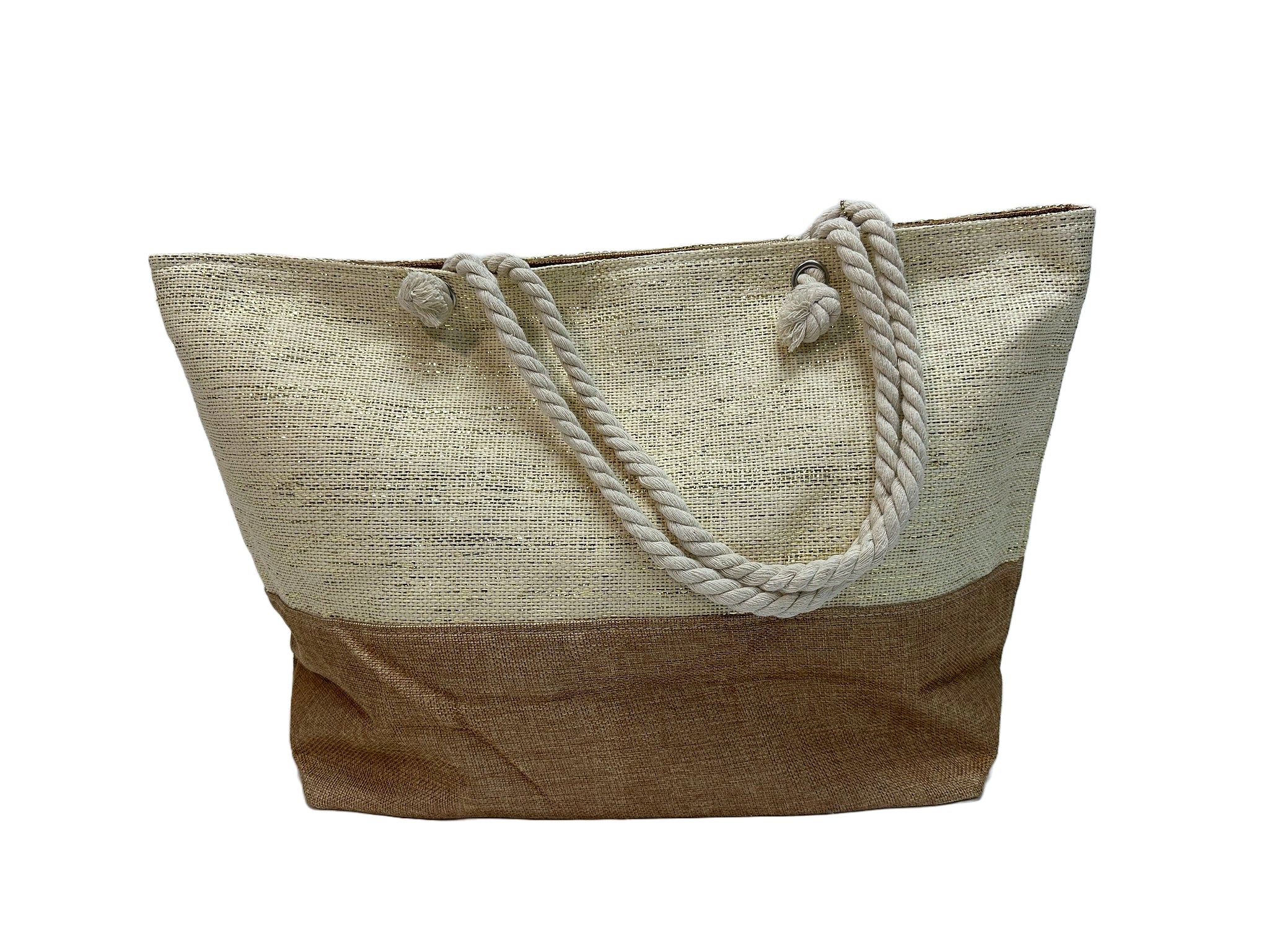 Two-Tone Burlap Tote Bag with Rope Handles - B306