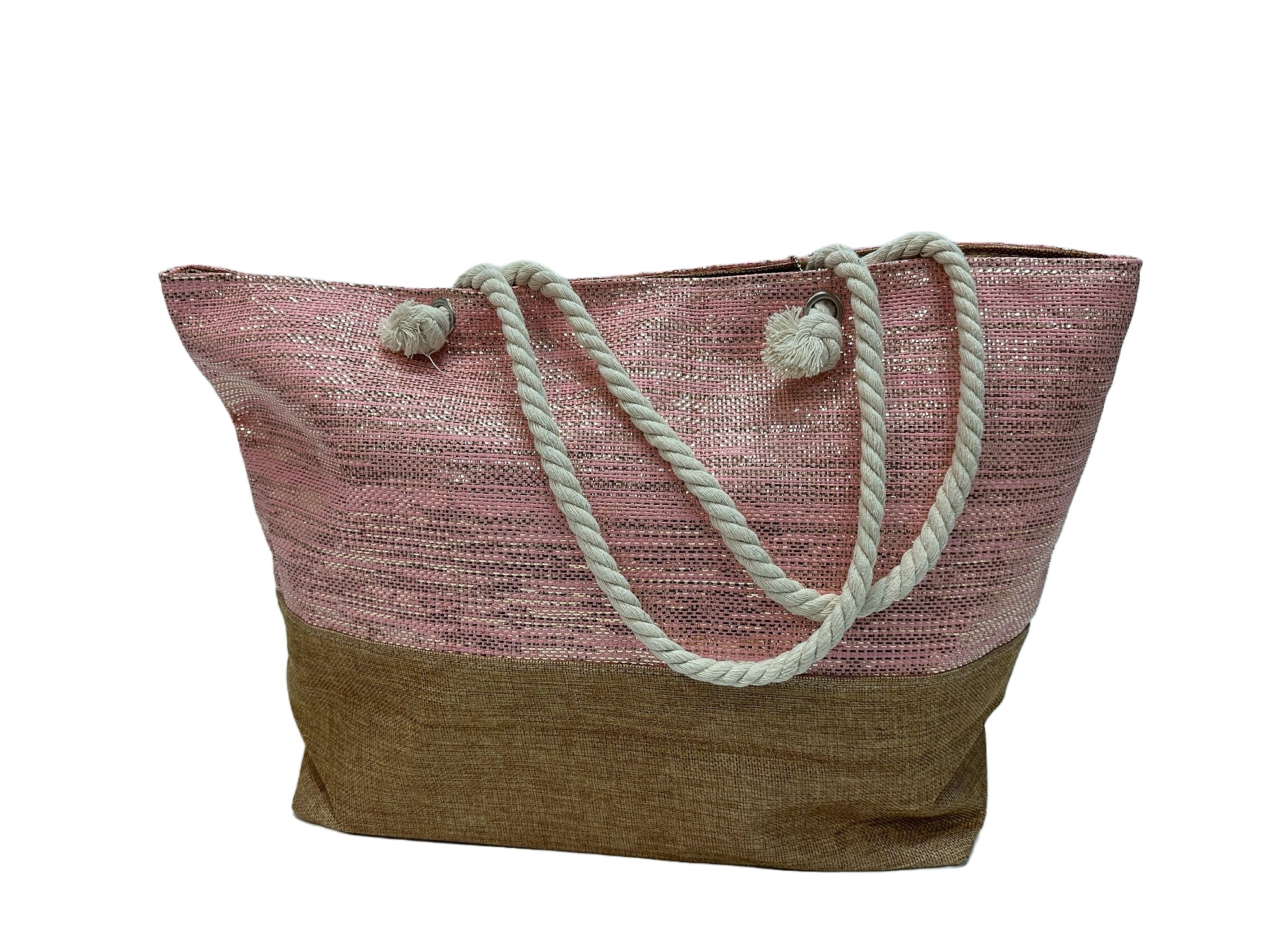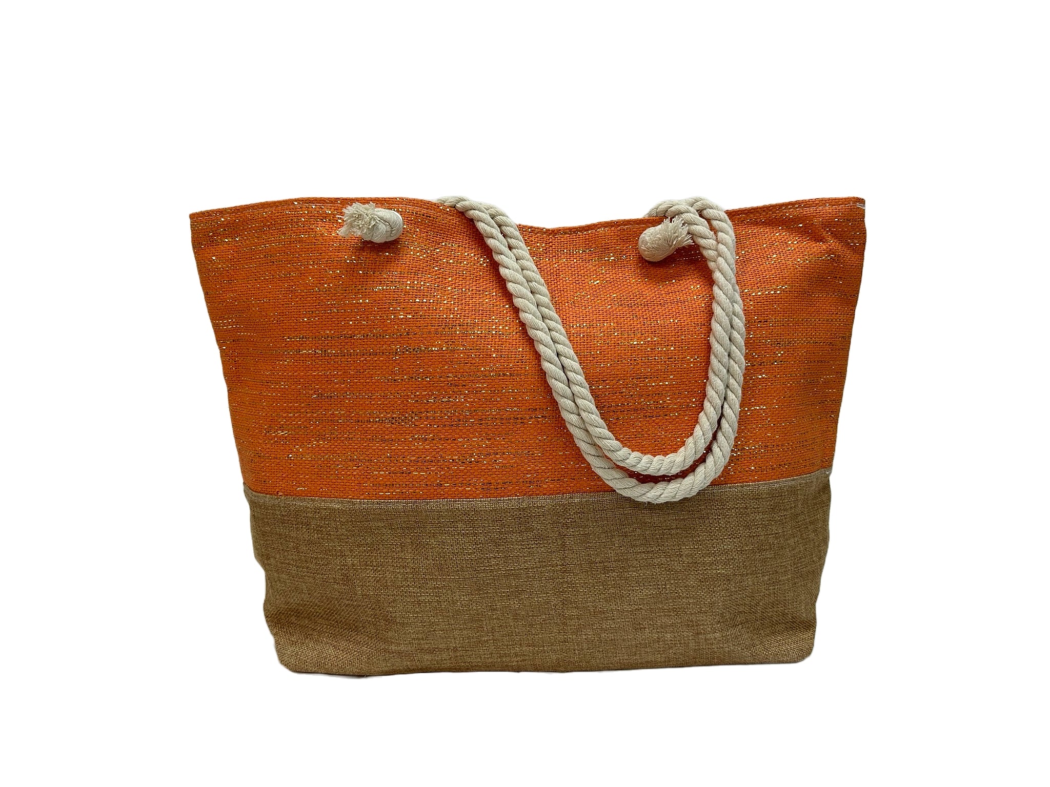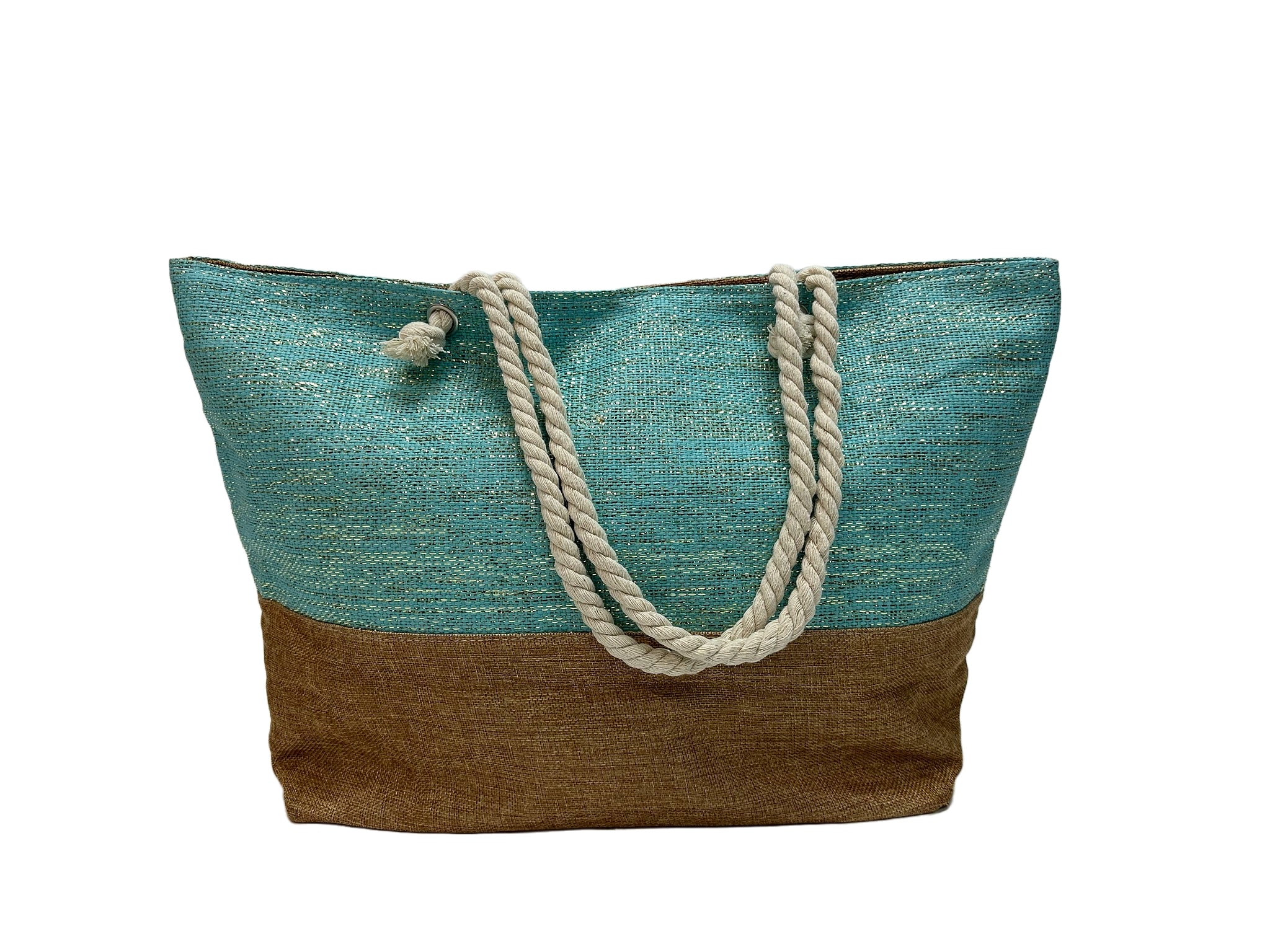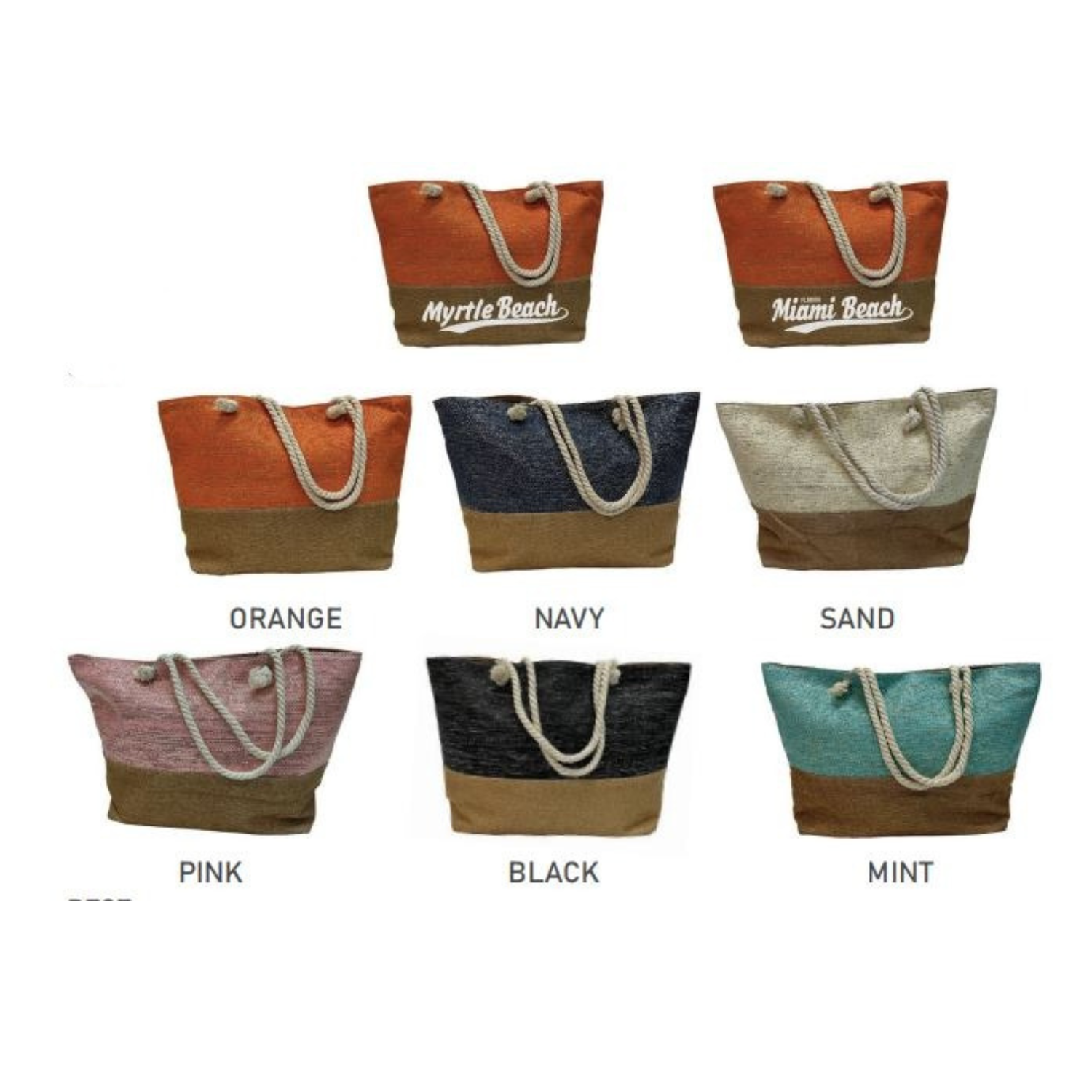 Two-Tone Burlap Tote Bag with Rope Handles - B306
